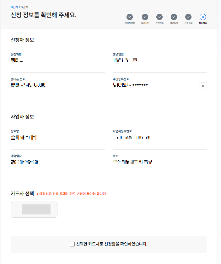 6. ๋ง์ง๋ง ์ ์ฒญ ์ ๋ณด ํ์ธ ํ ์ ์ถ ์๋ฃ